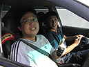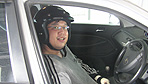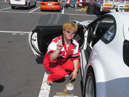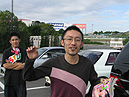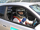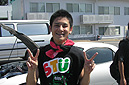 今回が2回目の鈴鹿走行になる「トルネオ佐々木君!」。1回目よりうまく走れたみたいで、満足気!額の汗が、頑張っている証拠です。 |